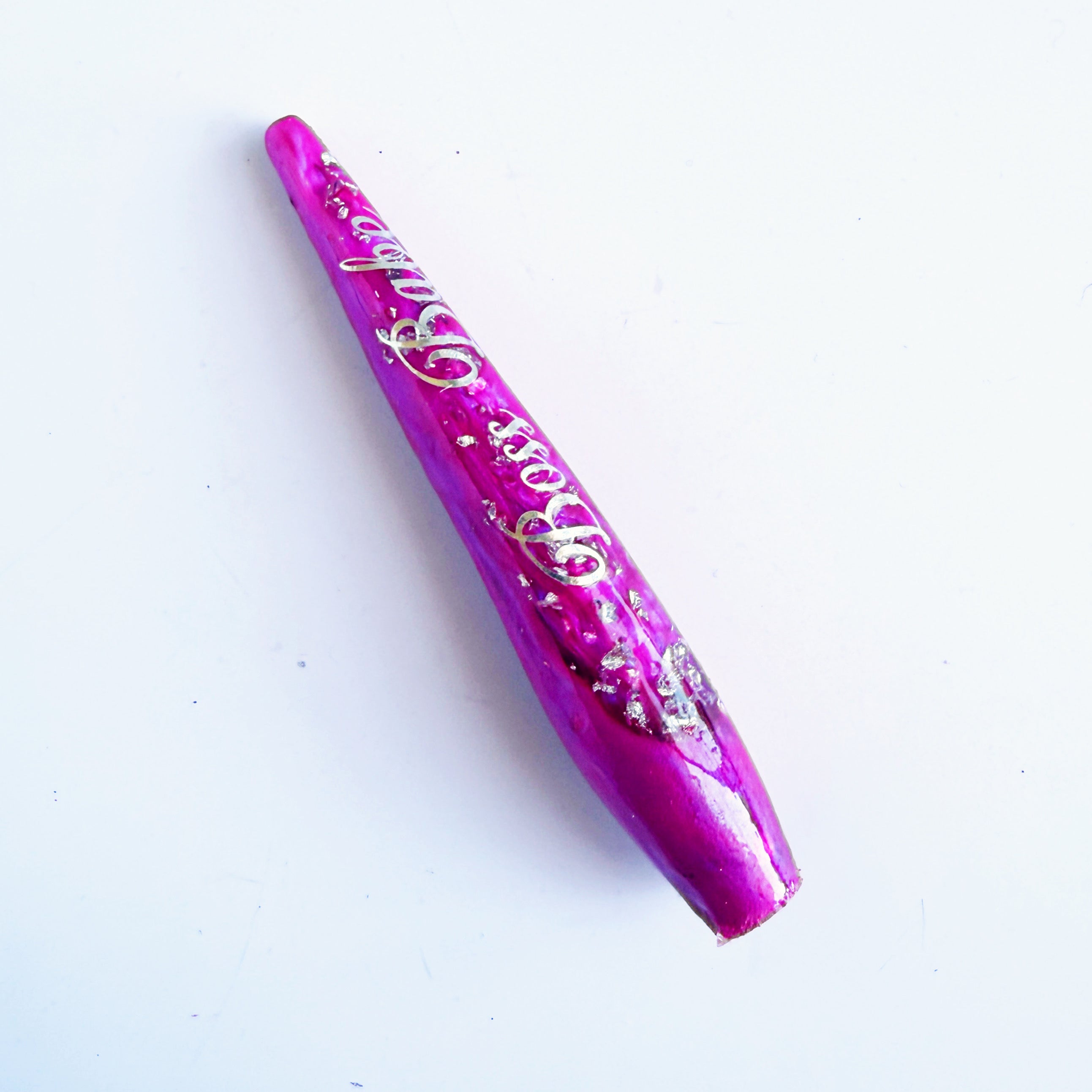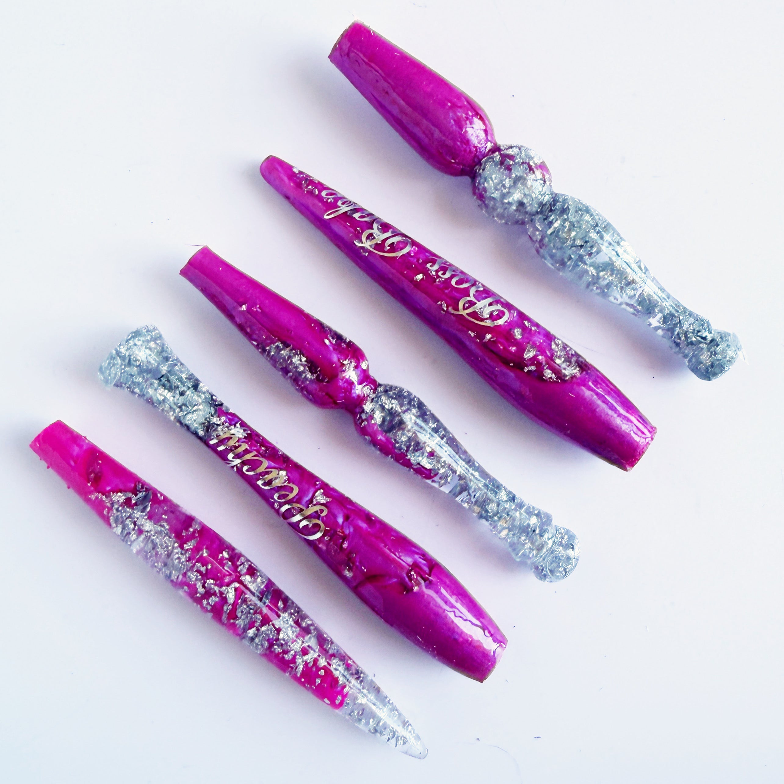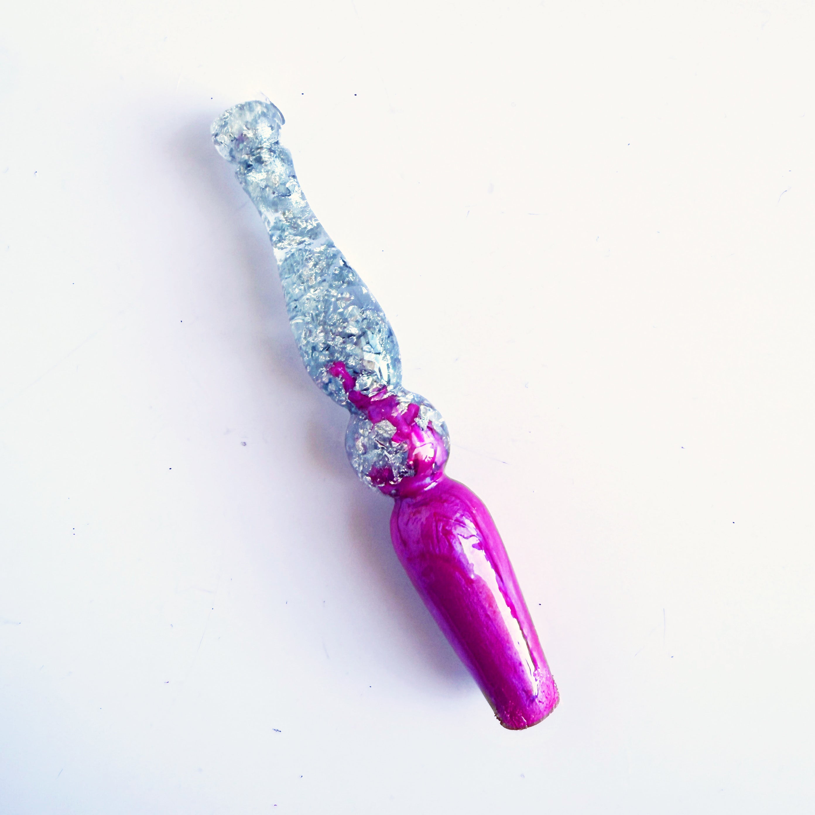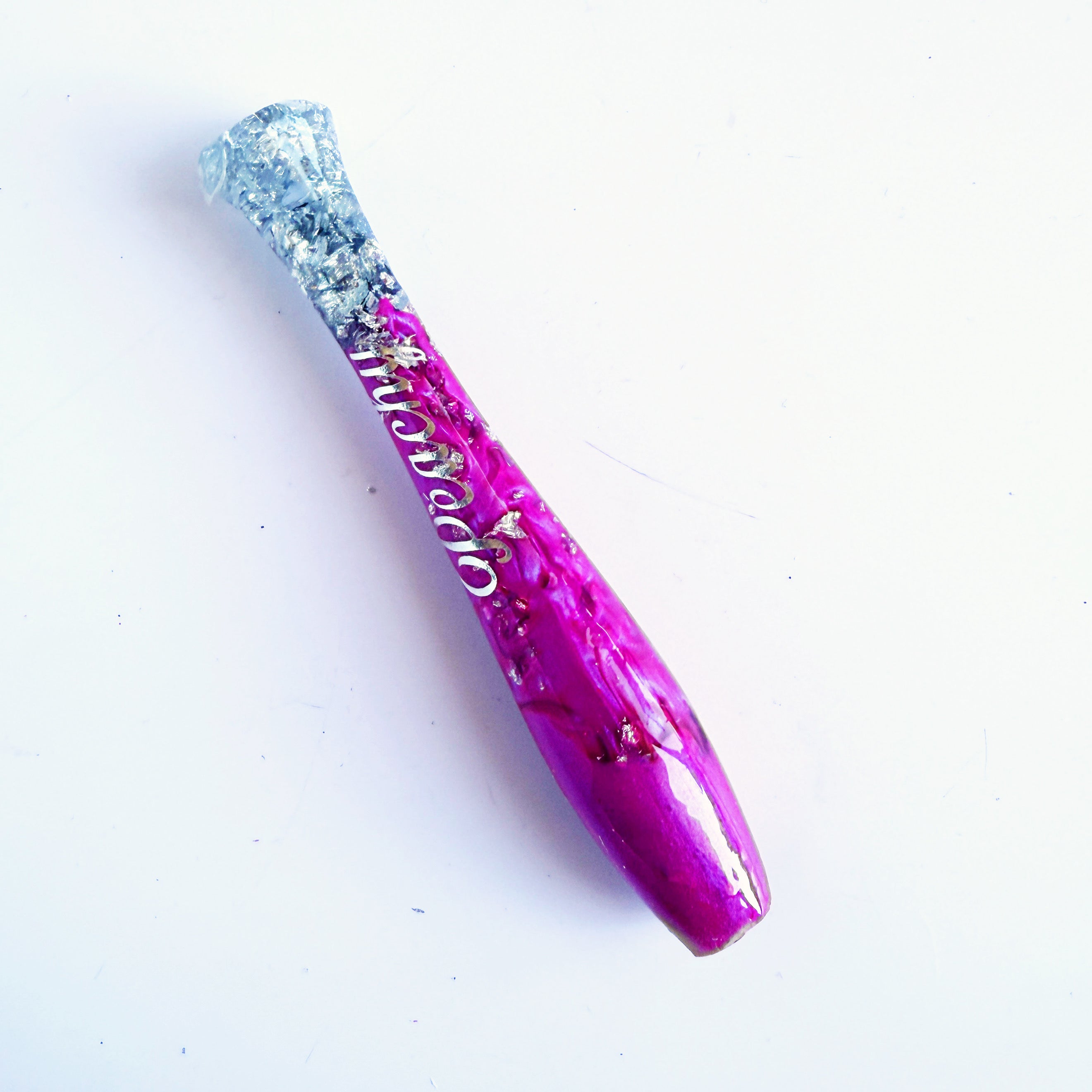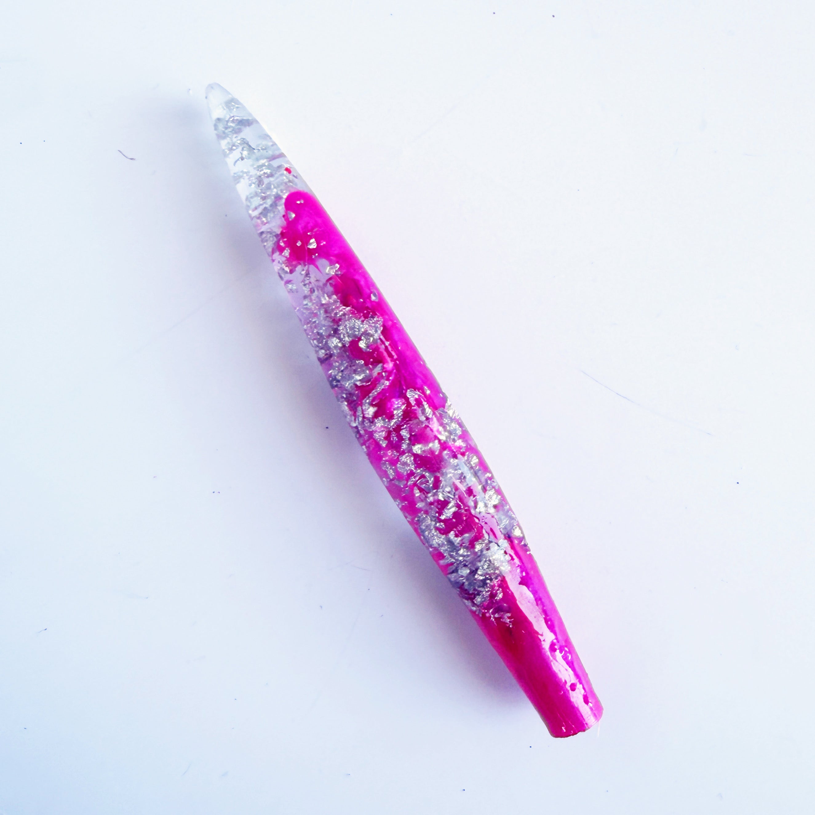 'First Date' Is beautiful blend of silver foil flakes and a hot pink shimmery resin with a blue colour shifting effect