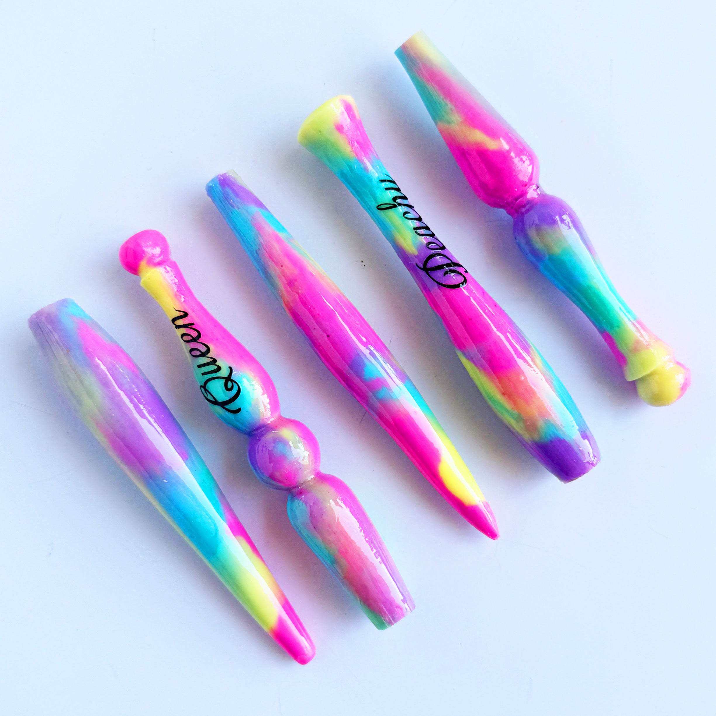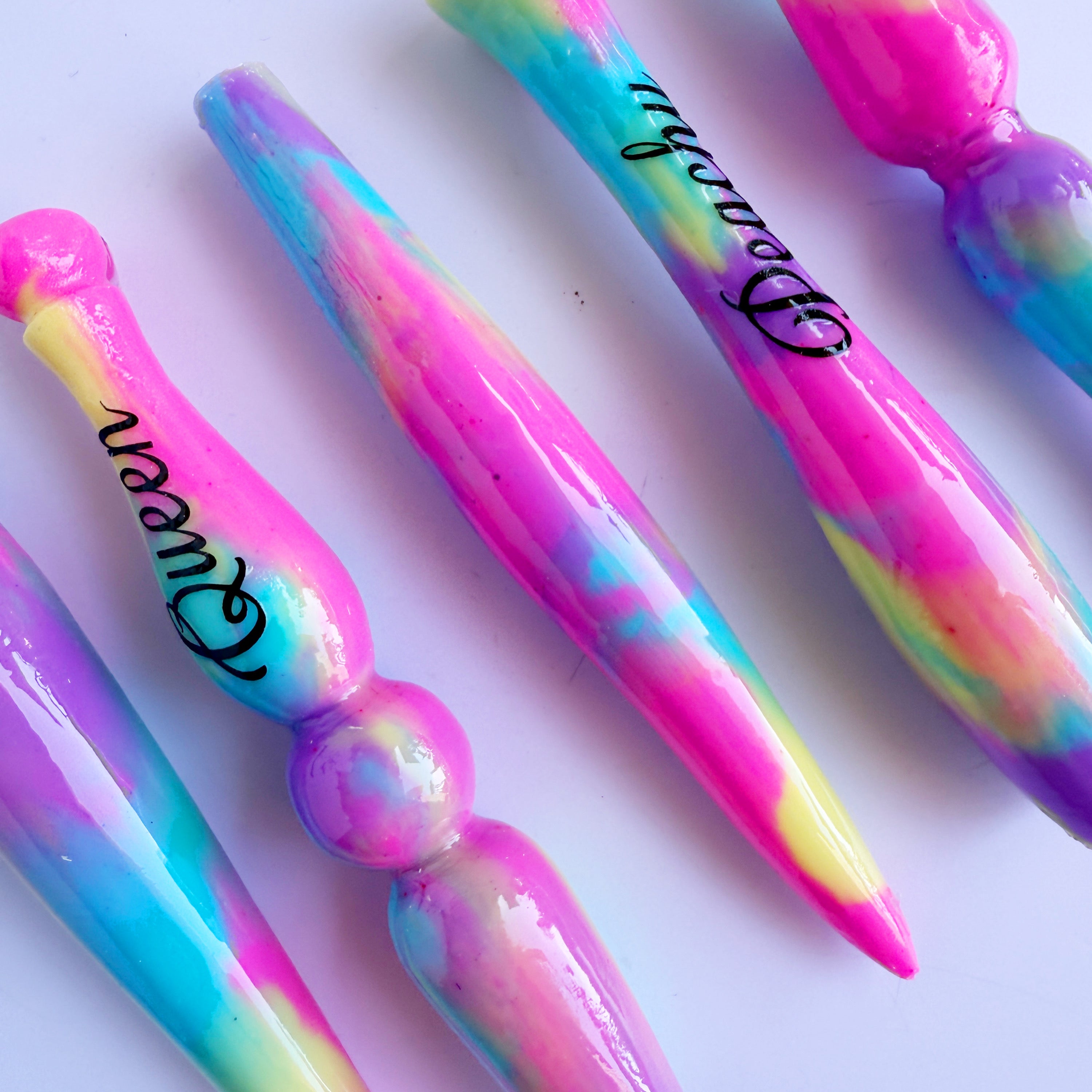'Spectrum Spell' is a bright swirling mix of pink, yellow, green, blue and purple resins