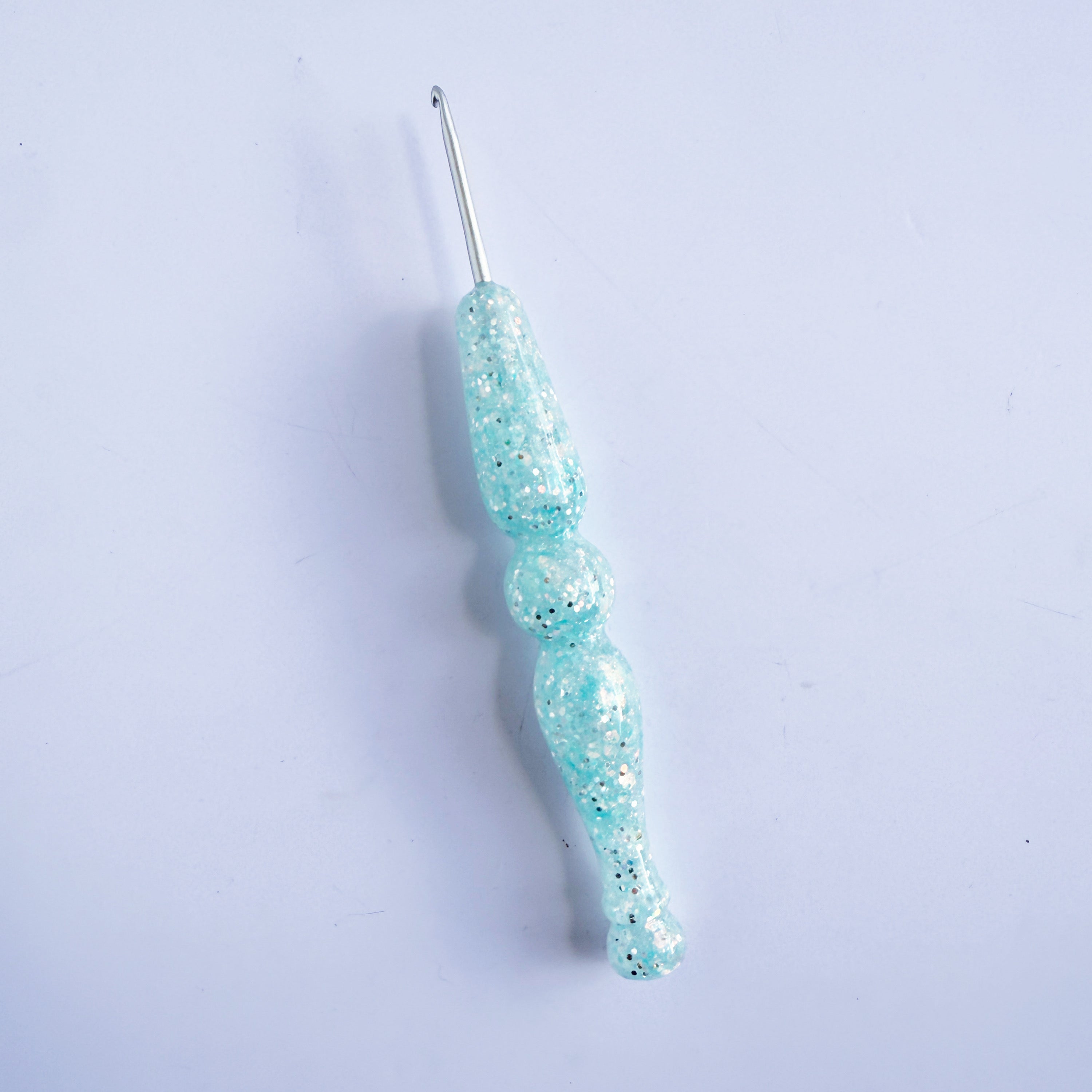 Add a touch of sparkle and comfort to your crochet projects with this handmade resin-handled crochet hook!