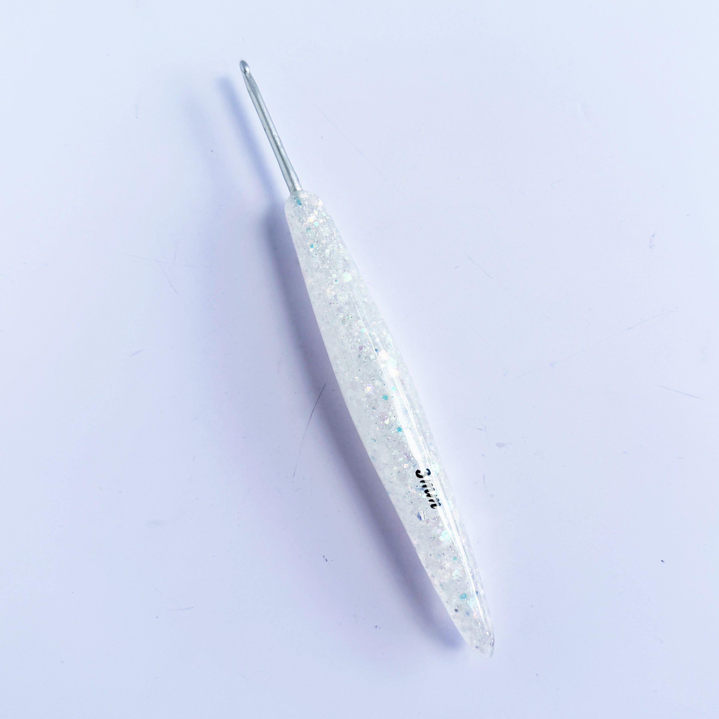 Add a touch of sparkle and comfort to your crochet projects with this handmade resin-handled crochet hook!