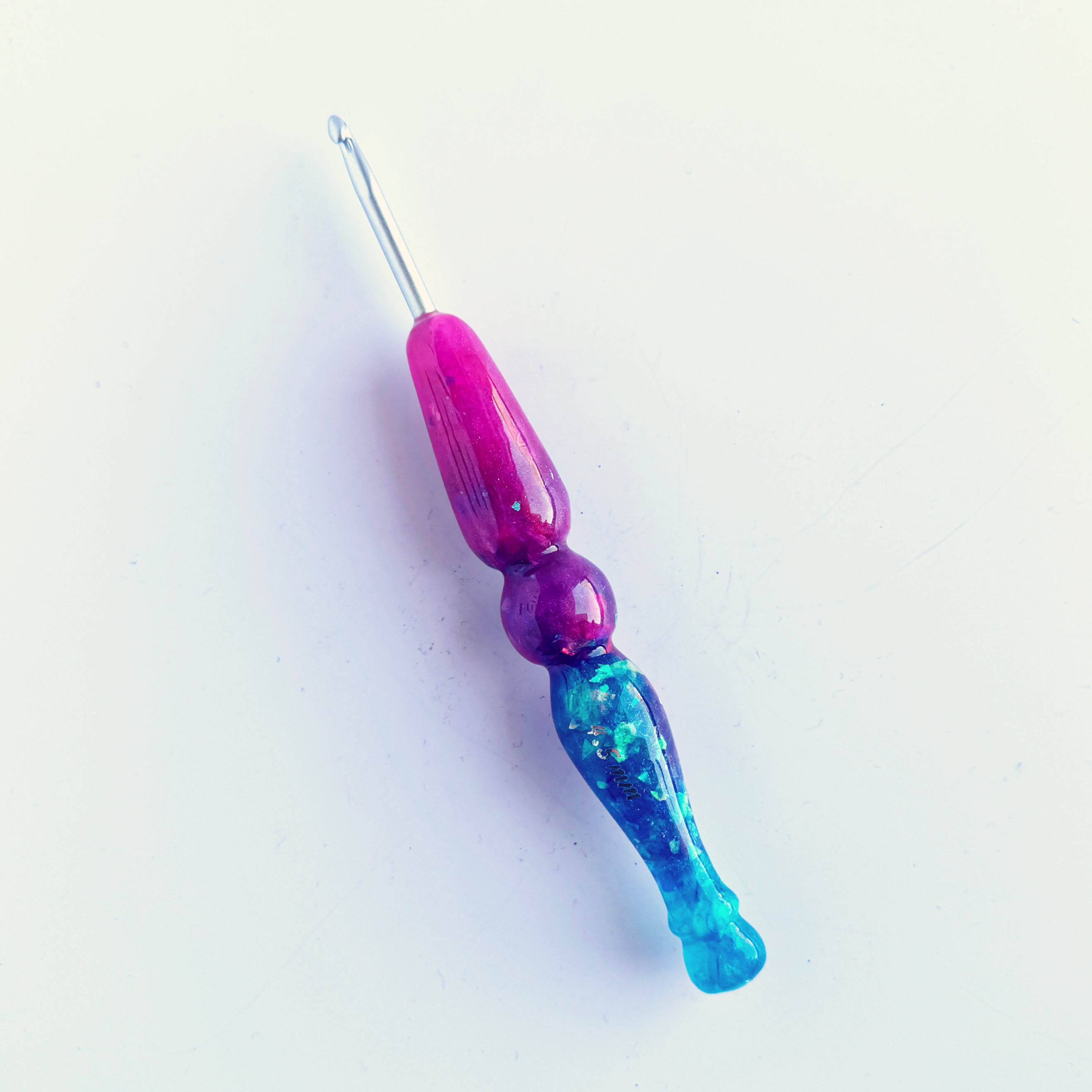 Add a touch of sparkle and comfort to your crochet projects with this handmade resin-handled crochet hook!