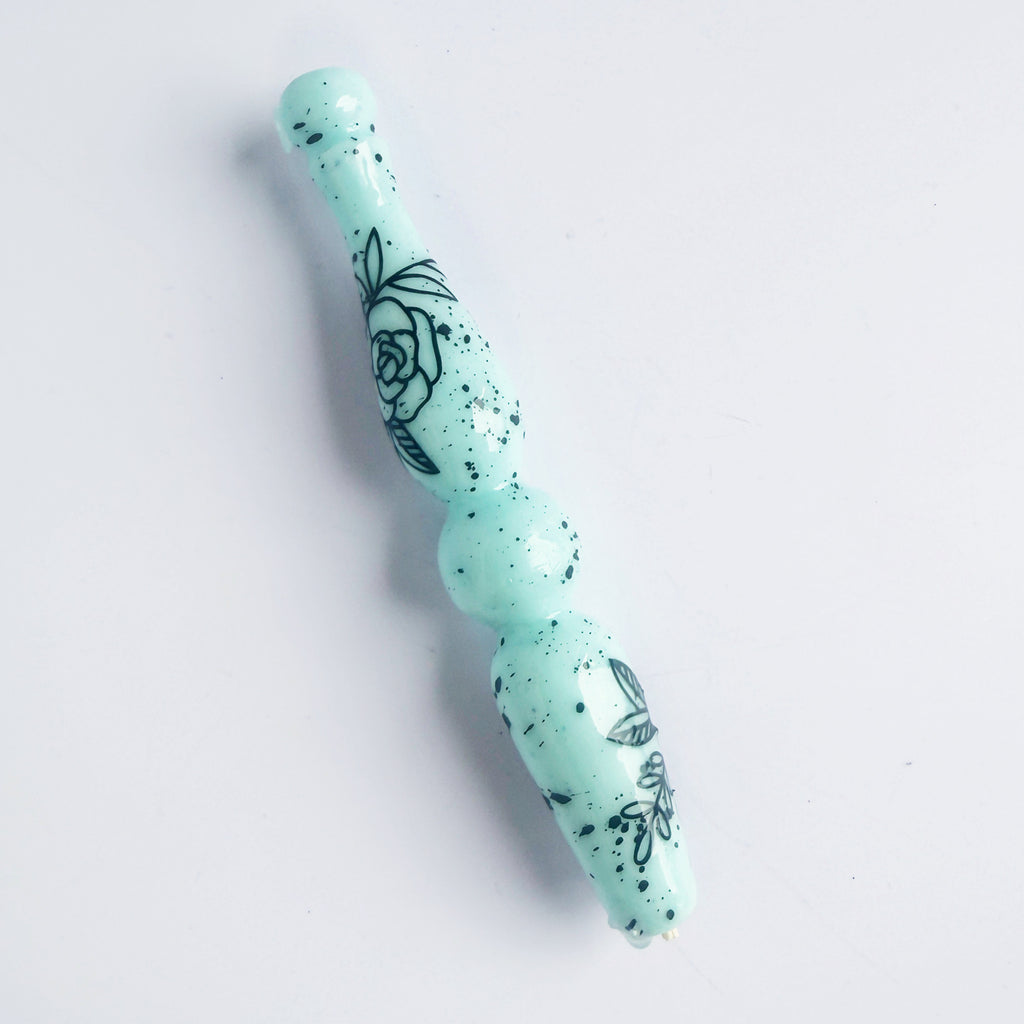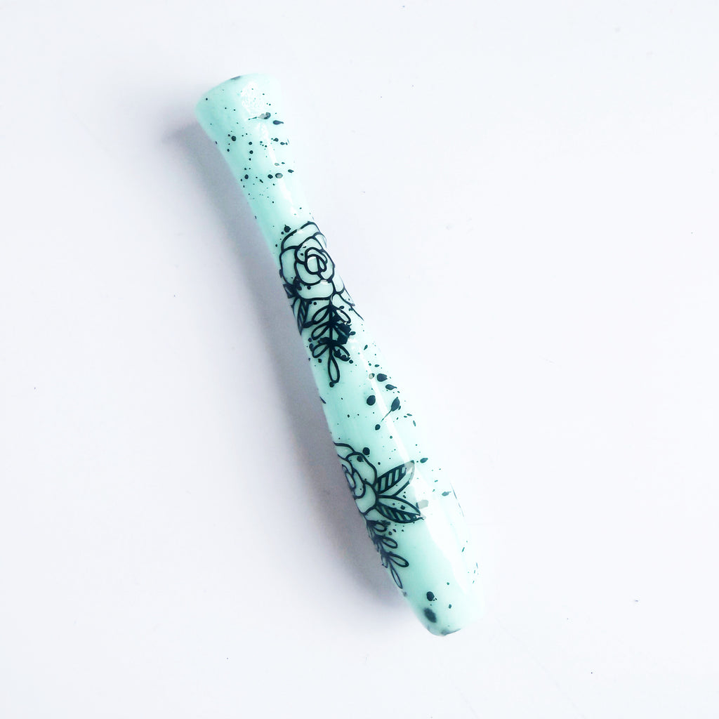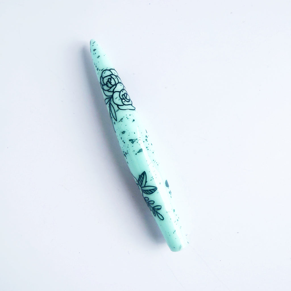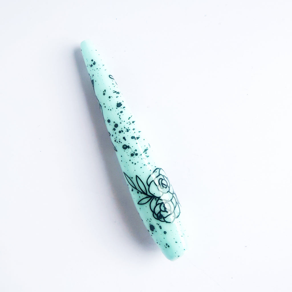 'Cry Baby' A shimmery light baby blue base, with black paint splatter and black rose decals.