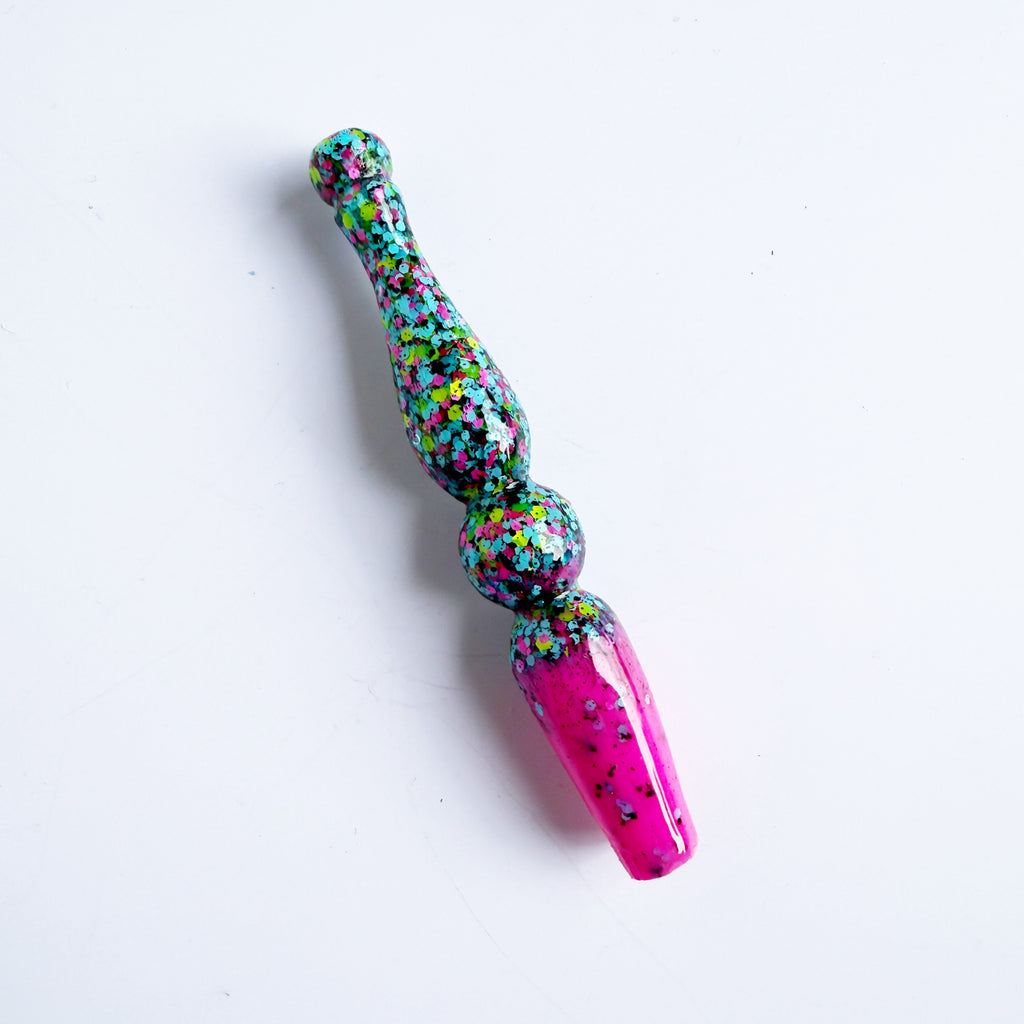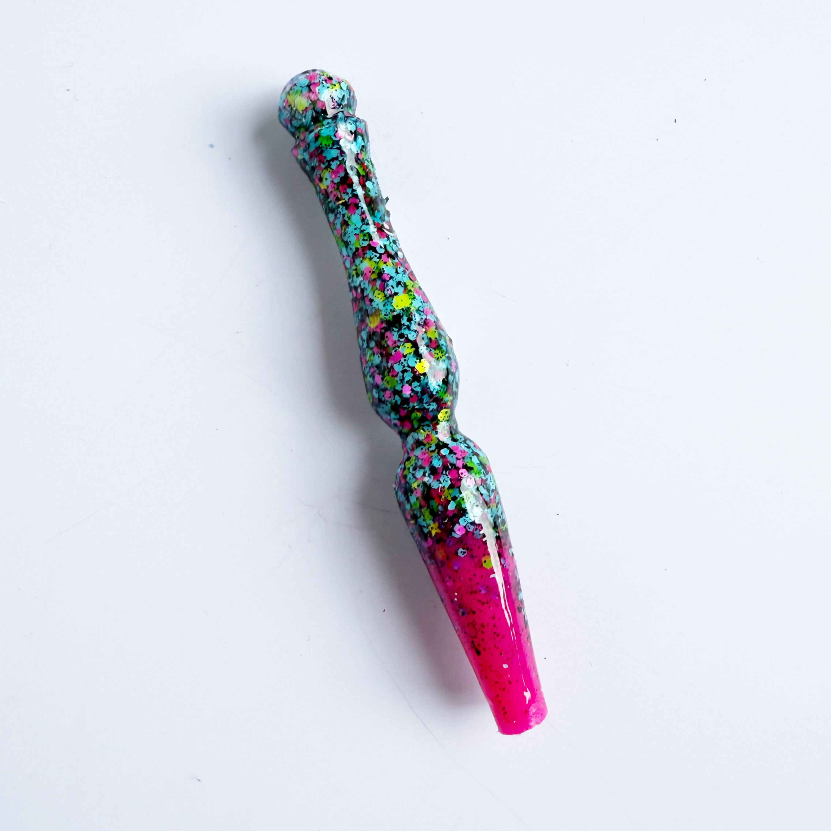 This listing is for 1 completed Ergonomic Crochet hook with a resin handle. Handles are pre-made and are completed when you order with your choice of hook tip, hook size measurement inlay and finished with a super shiny clear coat of epoxy.