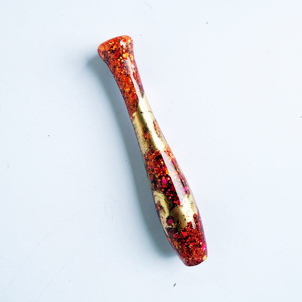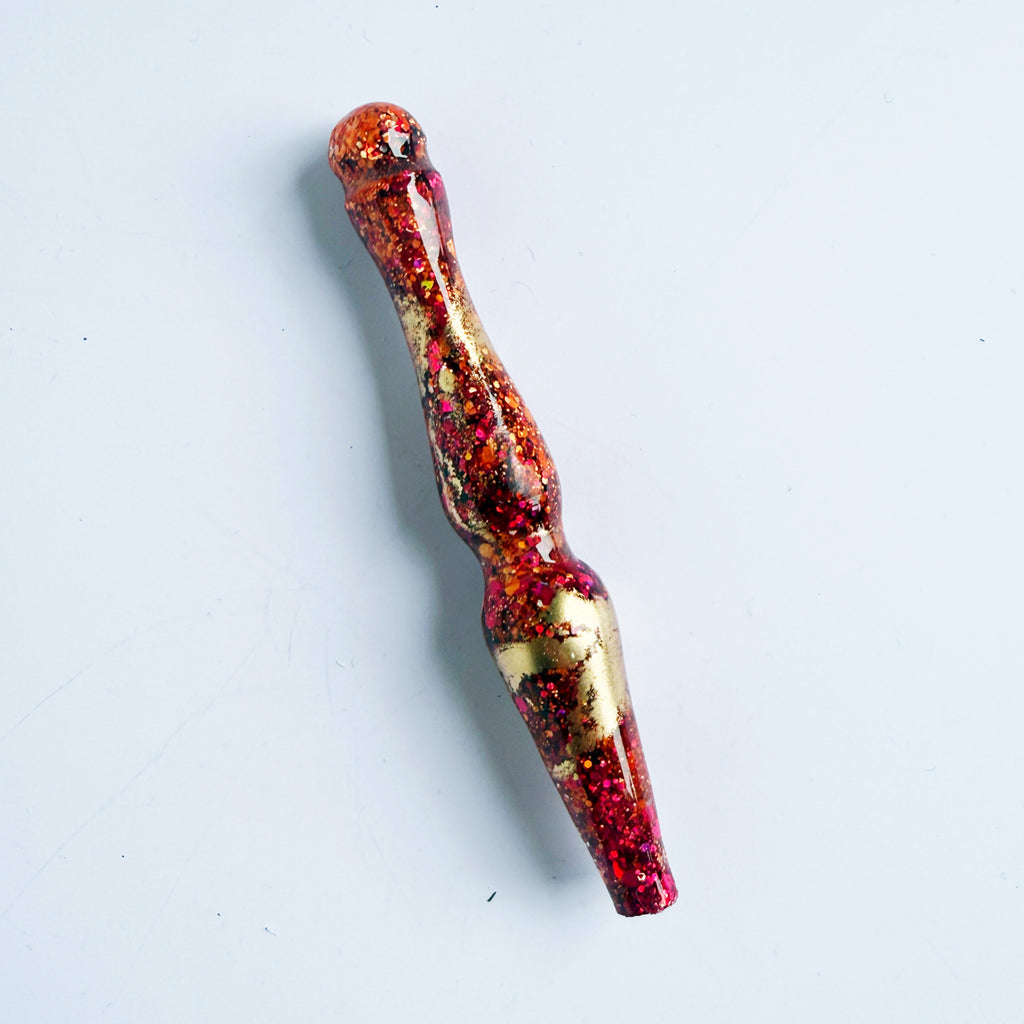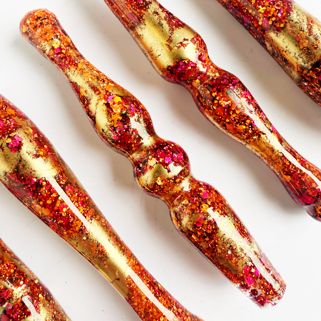 This listing is for 1 completed Ergonomic Crochet hook with a resin handle. Handles are pre-made and are completed when you order with your choice of hook tip, hook size measurement inlay and finished with a super shiny clear coat of epoxy.