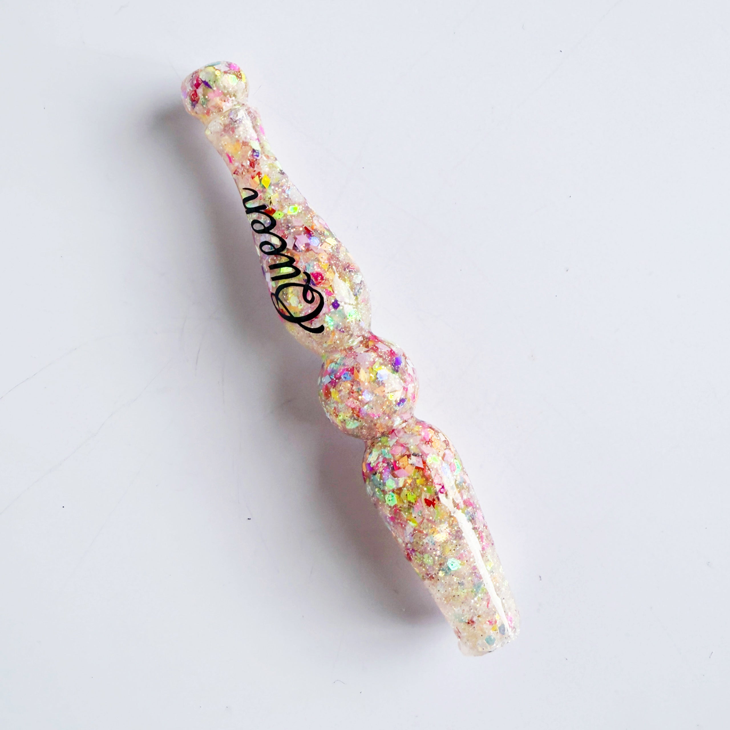 This listing is for 1 completed Ergonomic Crochet hook with a resin handle. Handles are pre-made and are completed when you order with your choice of hook tip, hook size measurement inlay and finished with a super shiny clear coat of epoxy.