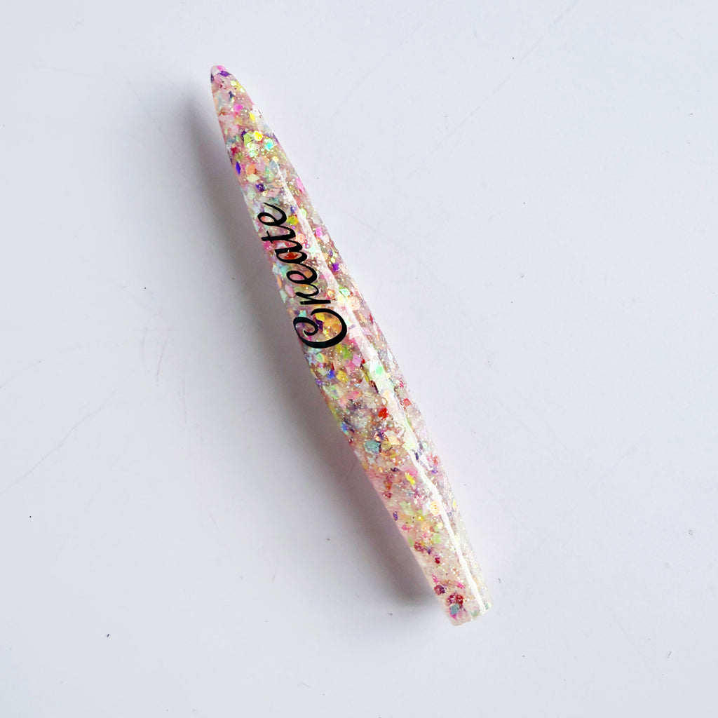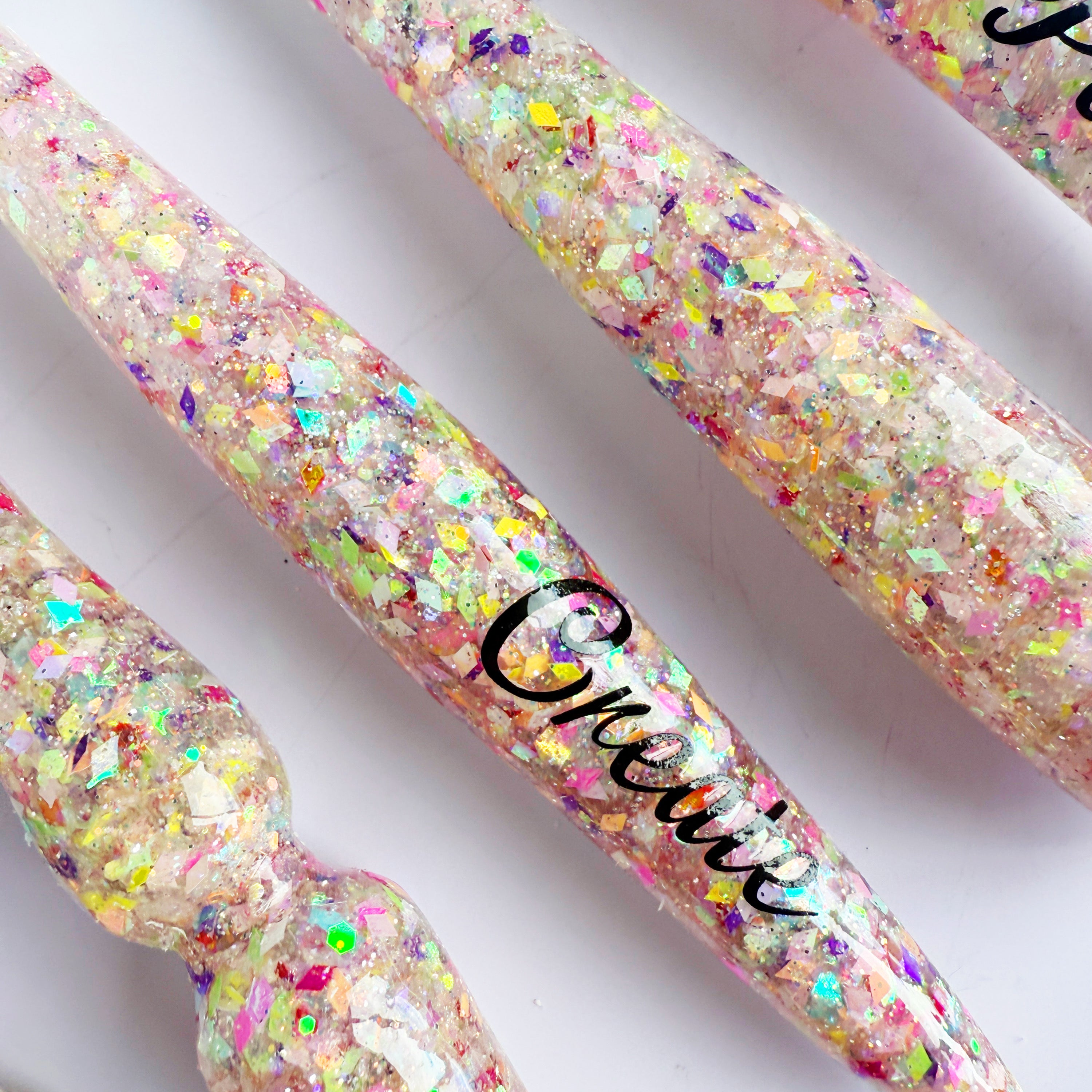 'Fizzy Festivity' Is a white iridescent glitter mixed with rainbow diamond glitters