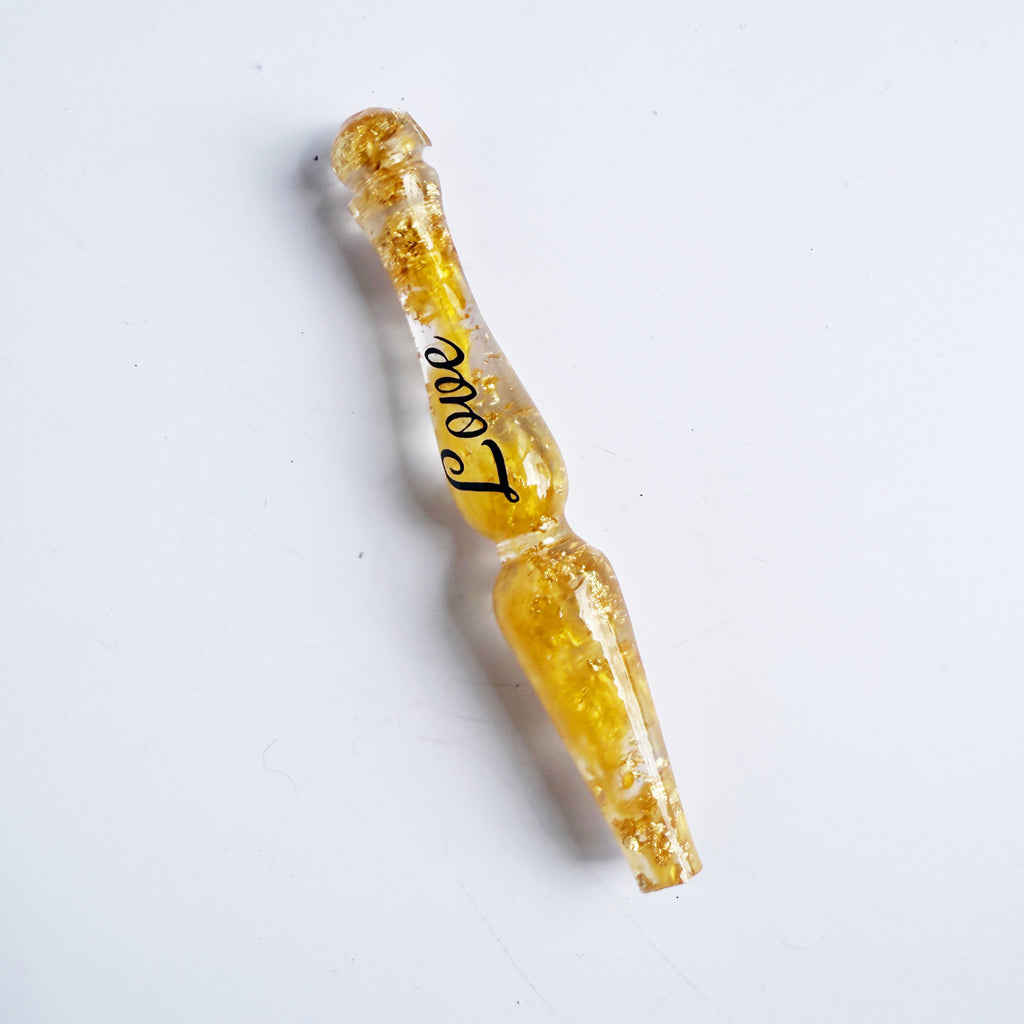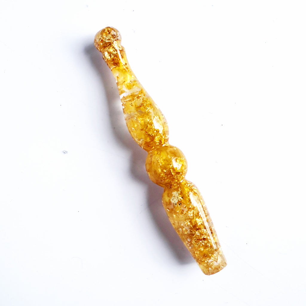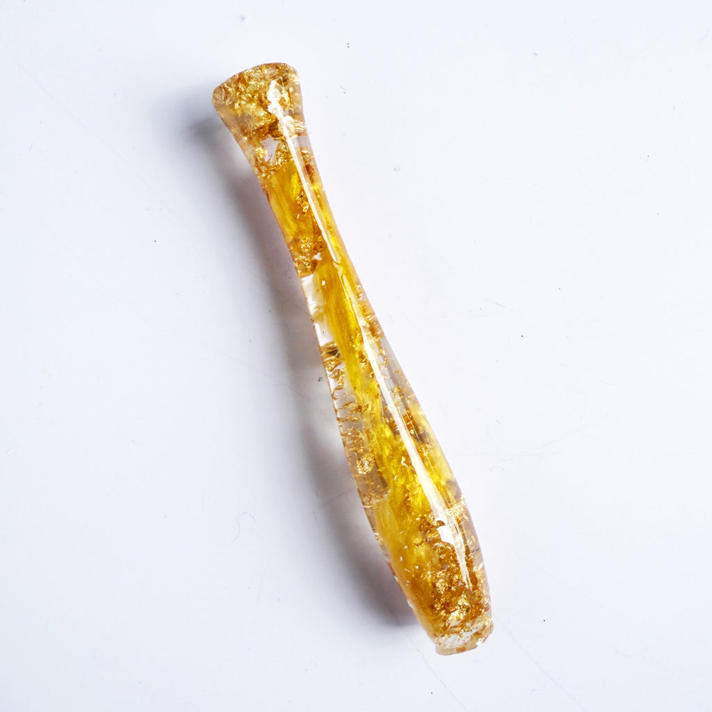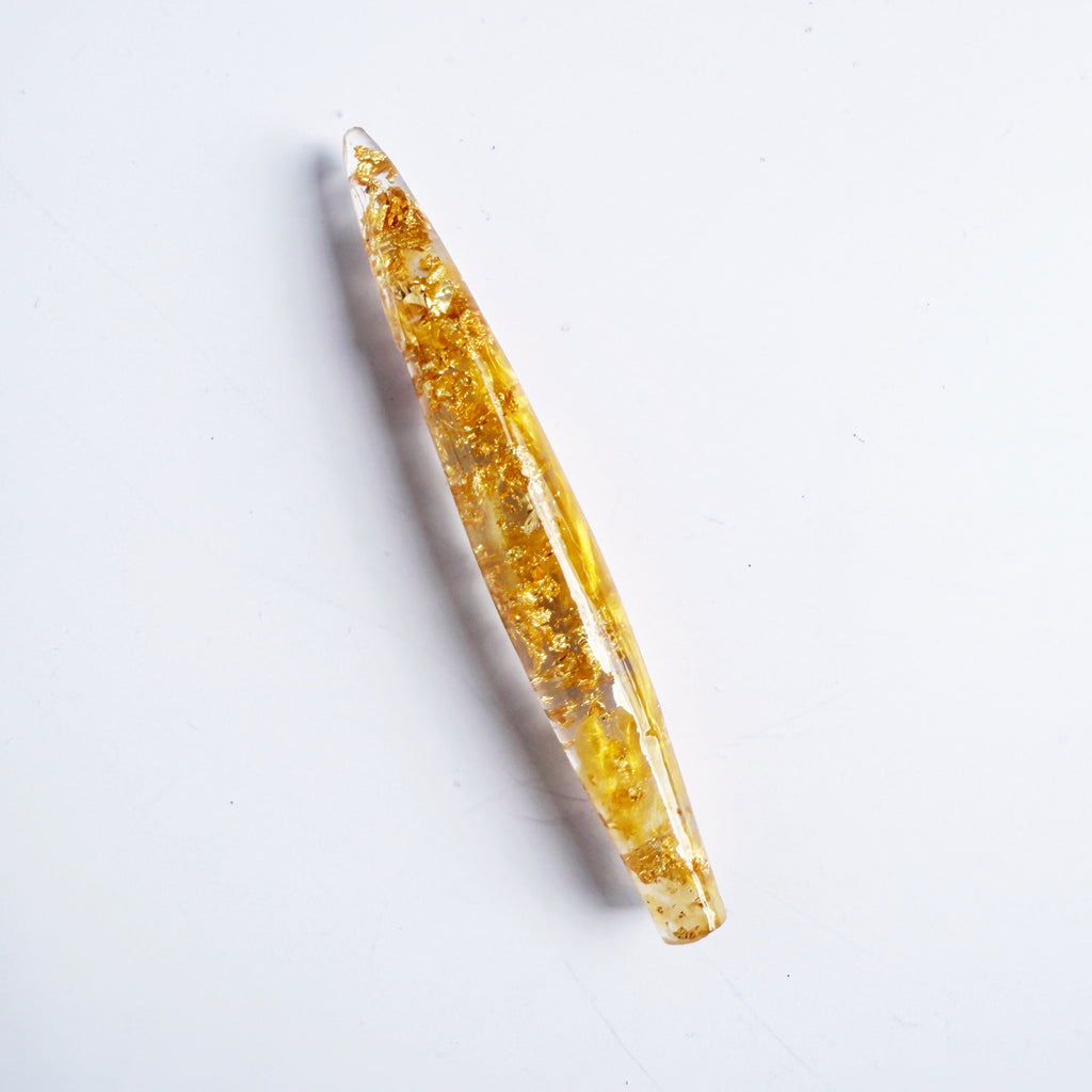 'High Society' A handle filled with flakes of gold foil and a swirl of shimmery gold resin.