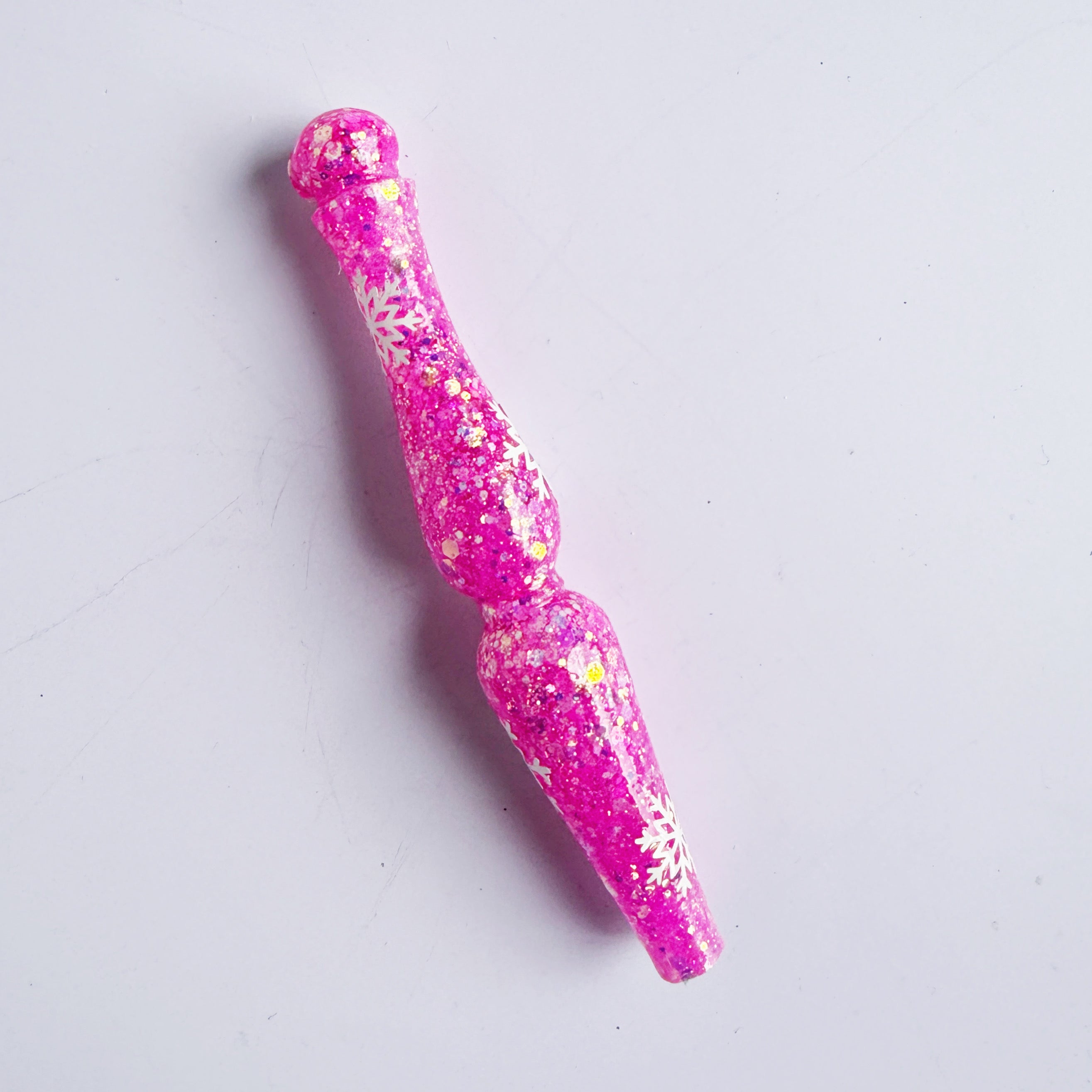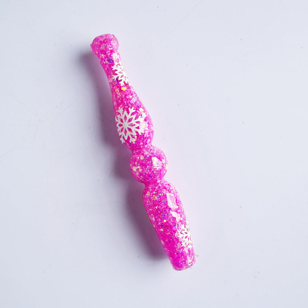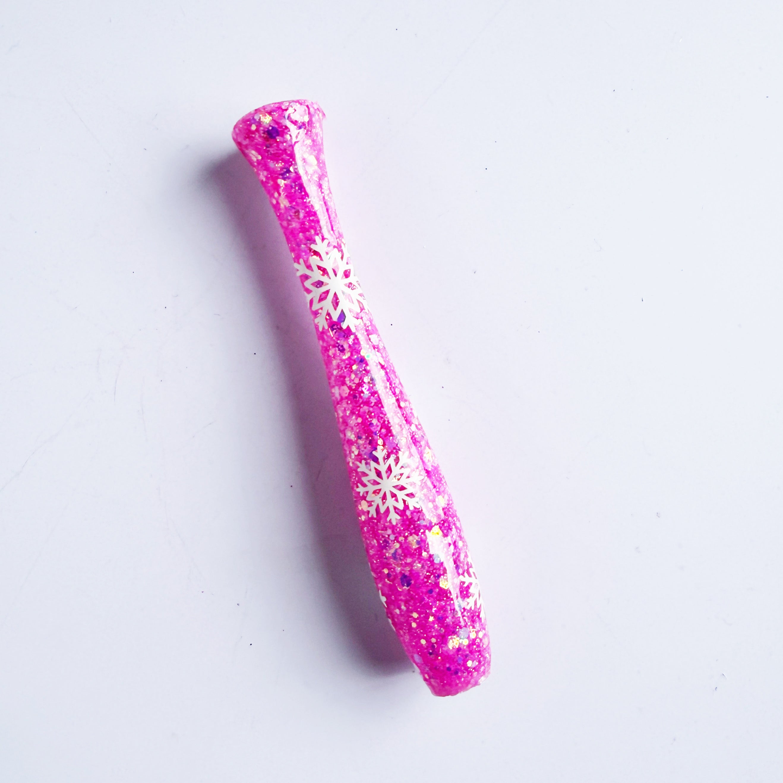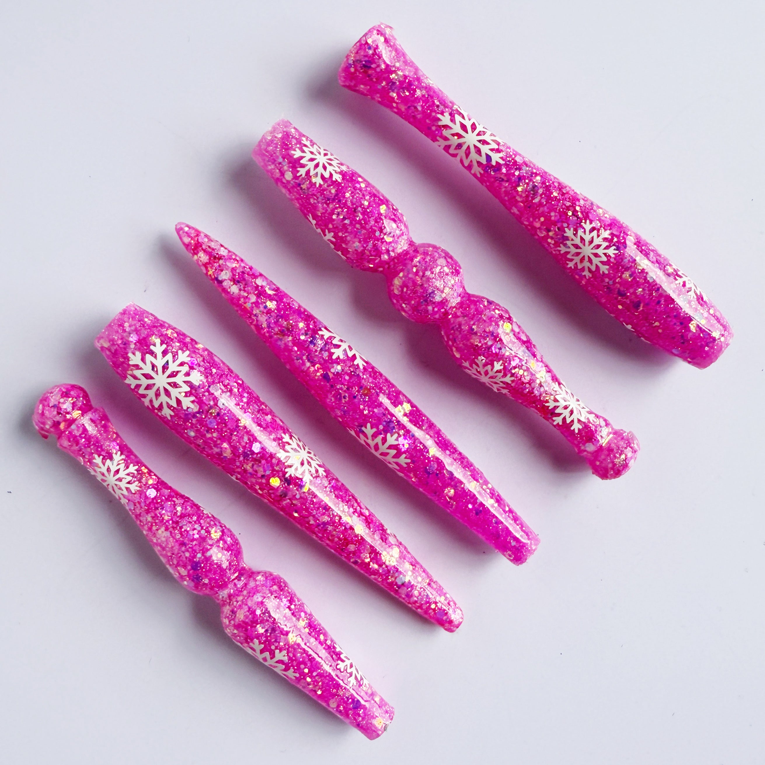 'Holiday Hottie' Is a stunning hot pink glitter base with white snoeflake decals.