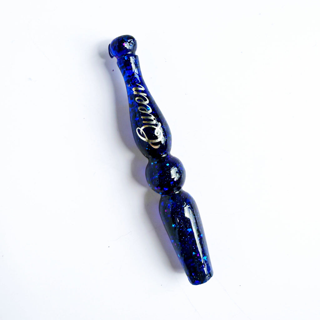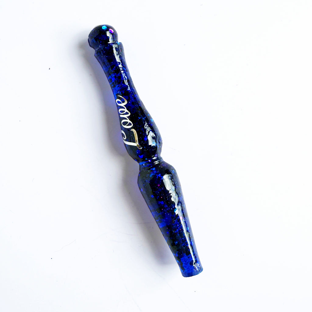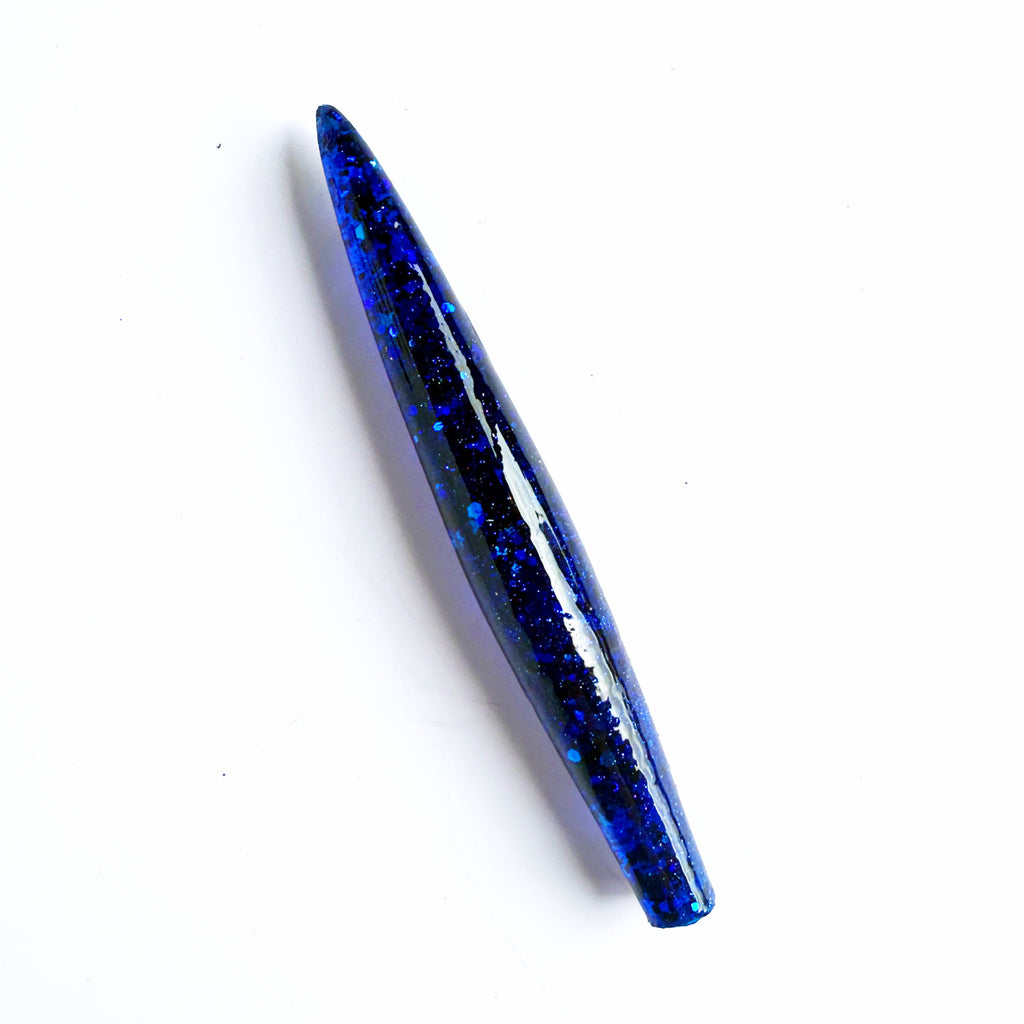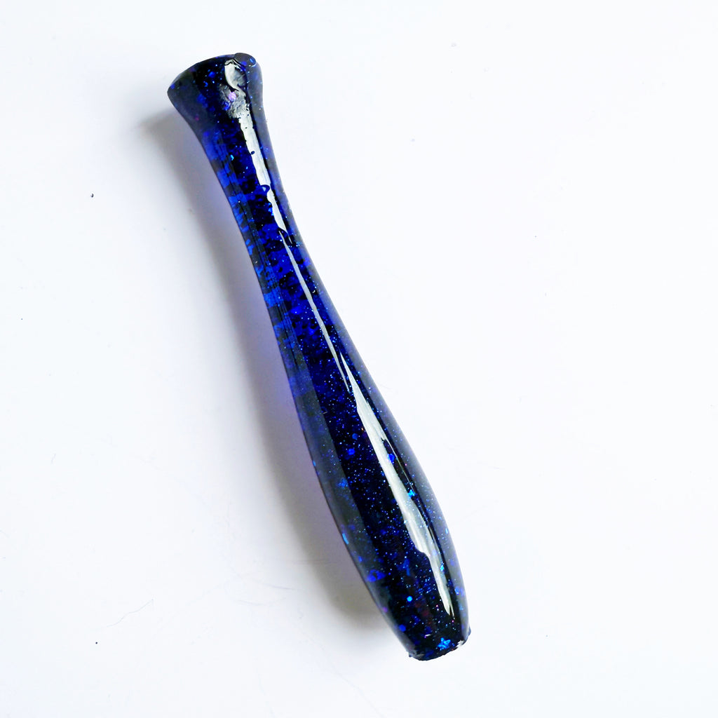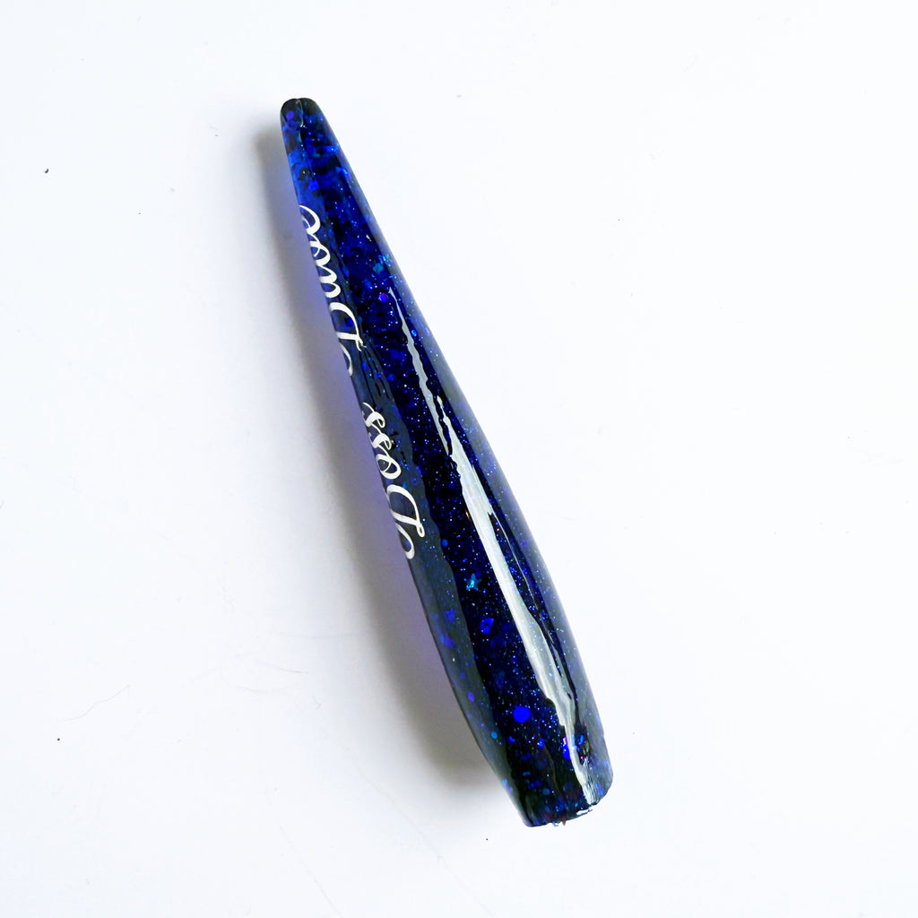'Midnight Nova' A translucent sapphire blue resin with blue shimmer and a scattering of blue and purple glitters.