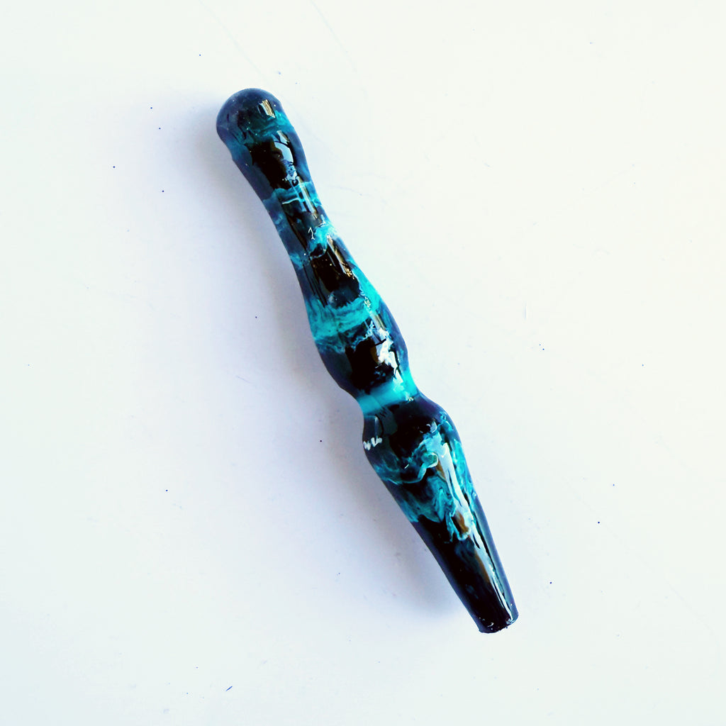 This listing is for 1 completed Ergonomic Crochet hook with a resin handle. Handles are pre-made and are completed when you order with your choice of hook tip, hook size measurement inlay and finished with a super shiny clear coat of epoxy.