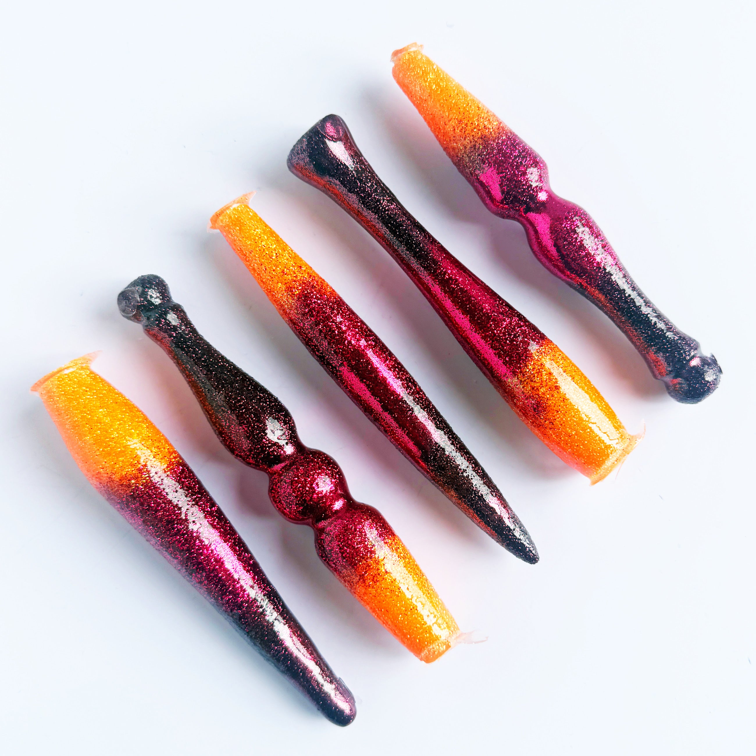 'Spiced Mulled Wine' Is a fine glitter fade. From sunrise orange, berry red, to a rich plum.